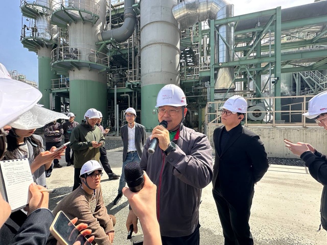버스에서 내리자마자 촘촘히 얽힌 배관과 기다란 굴뚝이 시야를 채웠다. 쉴 새 없이 돌아가는 발전설비 옆으로 탄소 포집·활용·저장(CCUS) 설비가 모습을 드러냈다. 흡수탑은 약 60m 높이로 솟아 있었다.