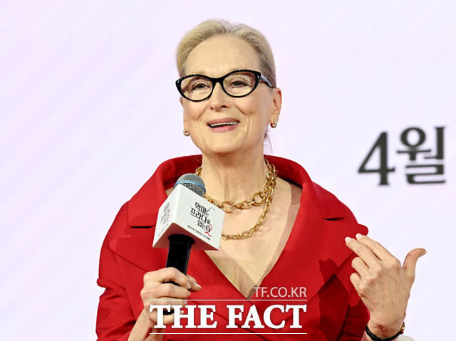 이날 "안녕하세요"라고 인사를 건넨 메릴 스트립은 처음으로 한국을 방문한 소감을 전했다. 그는 "전 세계를 여행하면서 한국을 지나치기만 했는데 이번에 오게 돼서 너무 기쁘다. 제가 묵고 있는 호텔이 너무 좋더라. 잠에서 못 깰 정도로 침대가 편하더라"며 "그리고 제가 사랑하고 자랑스러운 작품을 들고 와서 더 기쁘고 설렌다. 따뜻하게 맞이해줘서 감사하다"고 환하게 웃어 보였다.