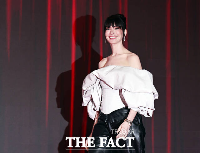 앤 해서웨이는 2018년 이후 8년 만에 다시 한국을 찾게 됐다. 작품을 홍보하기 위해서는 처음으로 내한한 그는 "오게 돼서 너무 기쁘지만 조금 더 길게 있지 못해서 약간 섭섭하기도 하다. 별마당도서관을 가는 게 제 버킷리스트 중 하나인데 시간이 부족할 것 같다"며 "그렇지만 주어진 시간 안에 많은 걸 경험하고 맛있는 걸 많이 먹으려고 한다"고 말문을 열었다.