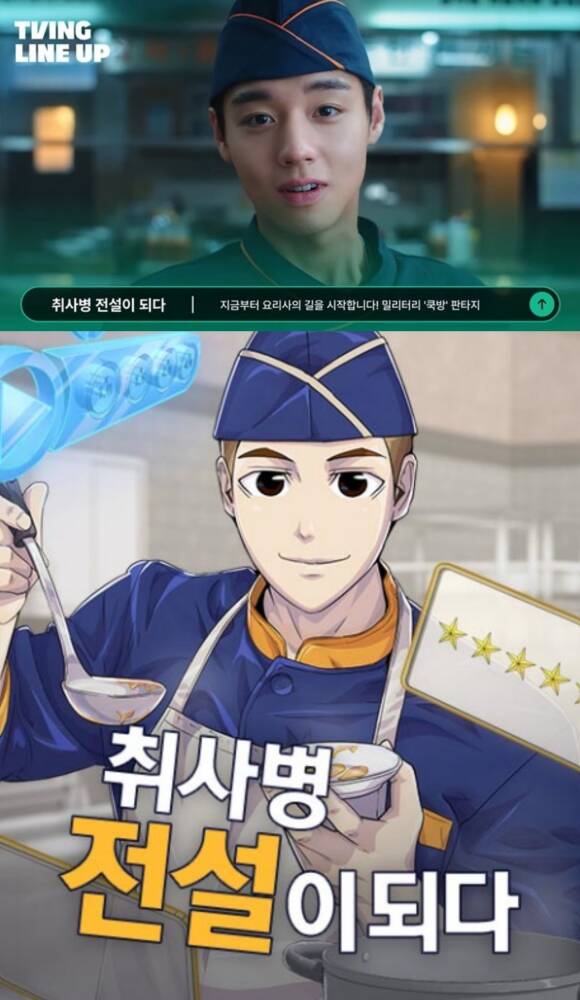 tvN '취사병 전설이 되다'(극본 최룡, 연출 조남형)는 총 대신 식칼, 탄띠 대신 앞치마를 두른 이등병 강성재(박지훈 분)가 '전설의 취사병'으로 거듭나는 과정을 그린 밀리터리 쿡방 판타지 드라마다. 동명의 웹툰과 웹소설을 원작으로 한다.