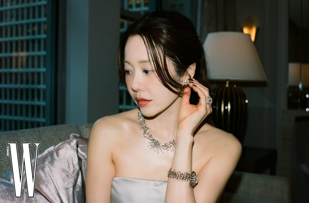 드레이프 디테일이 자연스럽게 흐르며 여성스러운 실루엣을 극대화한 드레스의 은은한 광택이 고현정의 피부 톤과 어우러져 차분하면서도 세련된 이미지를 강조했다.
