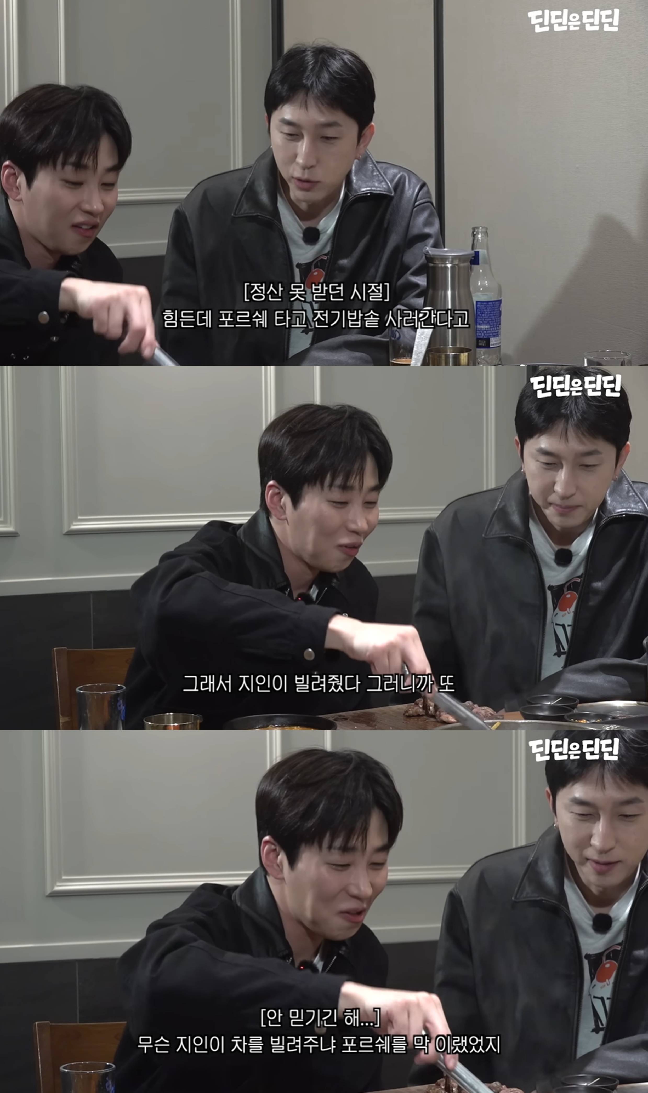 또 딘딘은 "그때 형이 슬리피 형에게 포르쉐를 빌려줬다. 그런데 계속 엔진이 멈추는 차였다"고 말했고, 슬리피는 "누가 들으면 신차인 줄 알겠다. 20년 된 박스터였다"고 해명했다.