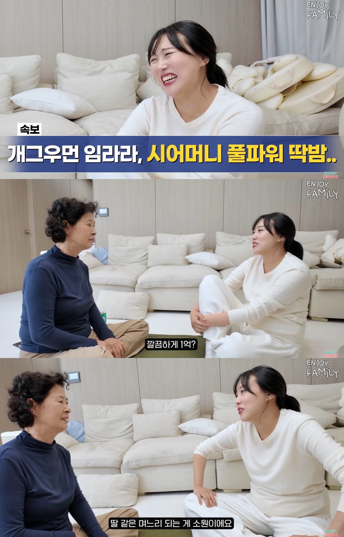 지난 19일 임라라, 손민수 부부의 유튜브 채널 '엔조이커플'에 '고부갈등 비상, 타짜며느리에게 져서 딱밤 맞은 시어머니' 제목의 영상이 게재됐다.