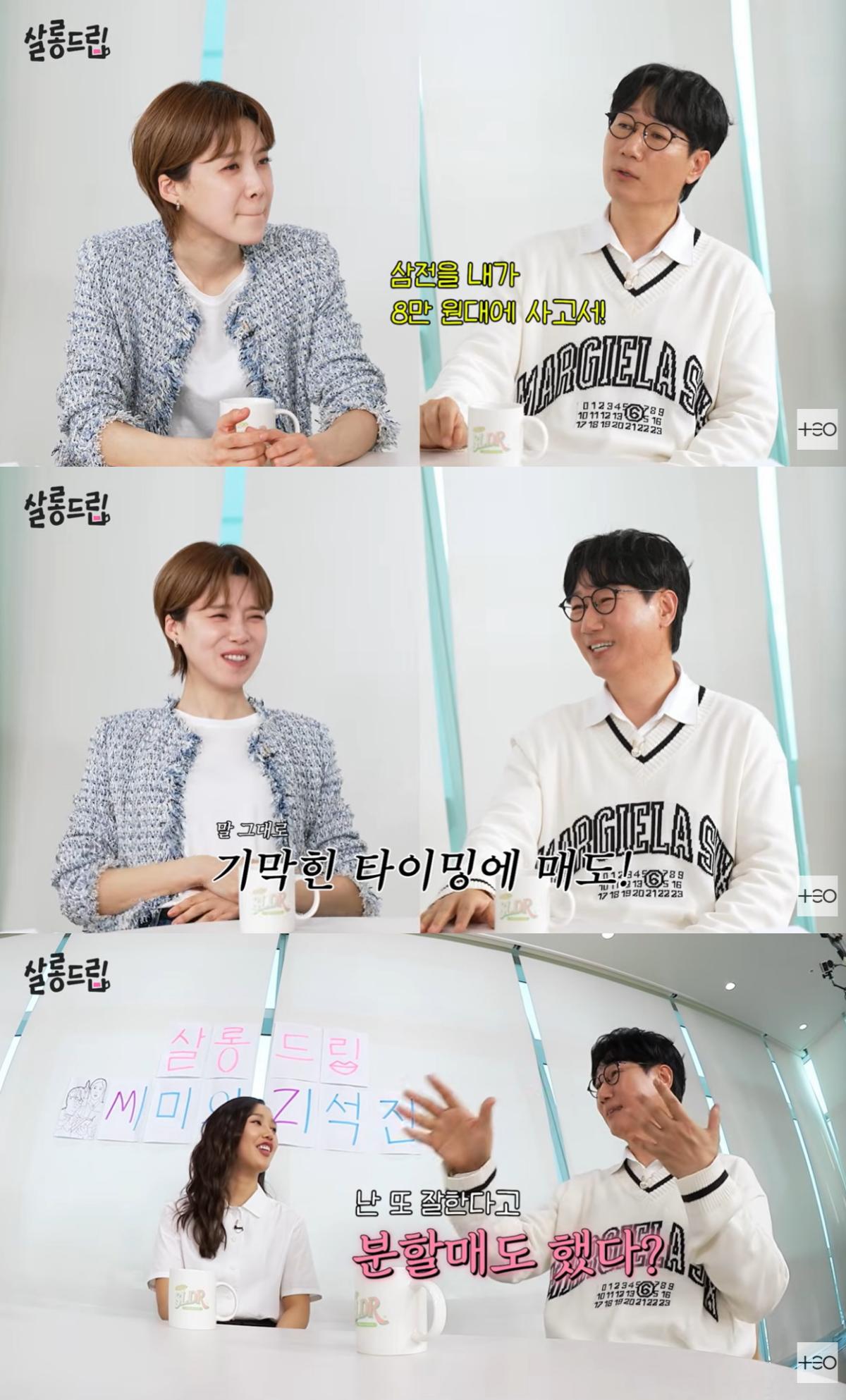 지석진은 "난 또 잘 하겠다고 분할매도를 했다. 조금씩"이라고 이야기를 이어갔고, "아내도 가지고 있었는데 '난 팔았다'고 이야기를 괜히 했다. '타이밍이 중요하다. 알아서 해라'라고 했는데 아내도 팔았더라"라고 덧붙였다.