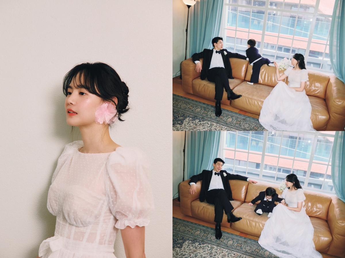 사진 속에는 결혼 11주년을 맞아 아들, 반려견들과 함께 기념사진을 찍은 김무열 윤승아 부부의 모습이 담겼다. 두 사람은 턱시도와 웨딩드레스부터 캐주얼한 복장까지 편안한 분위기 속에서 촬영을 진행했다.