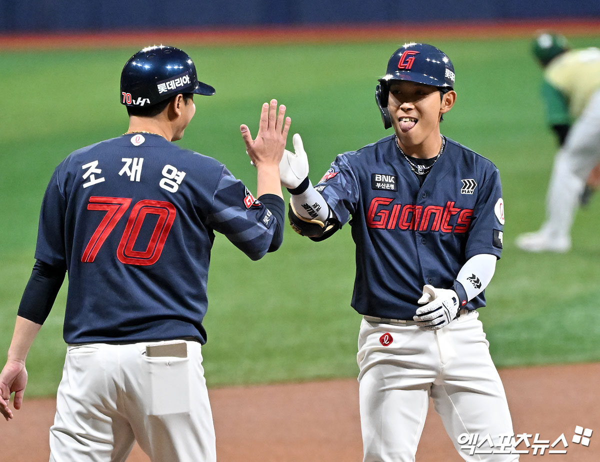 또 "김태형 감독님께서 믿고 선발 기회를 주신 만큼 책임감을 가지고 준비했다. 그 믿음 덕분에 타석에서도 주저하지 않고 내 플레이를 할 수 있었다. 또한 이성곤 타격코치님께서 지속적으로 조언해주셨는데, 좋은 결과로 이어진 것 같다"며 "앞으로는 지금보다 더 꾸준한 모습으로 팀에 보탬이 되고 싶다. 그리고 나로 인해 감독님께서 웃는 날이 더 많아질 수 있도록 노력하겠다"고 각오를 밝혔다.