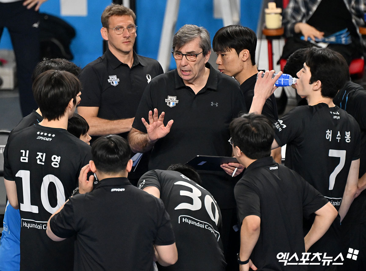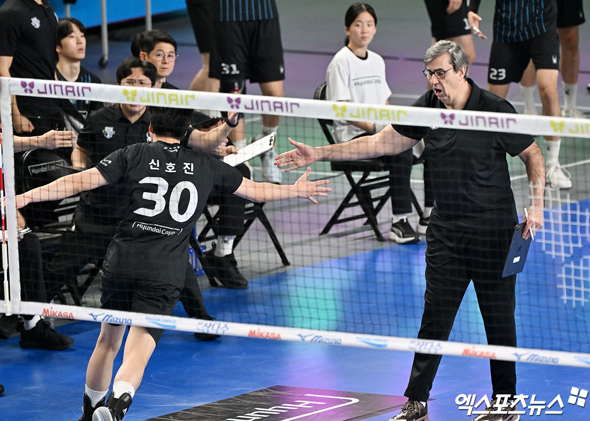 (엑스포츠뉴스 천안, 김지수 기자) 필립 블랑 현대캐피탈 감독은 챔피언 결정전에서 발생한 판정 논란을 놓고 여전히 한국배구연맹(KOVO)에 앙금이 남은 모양새다. 다만 조원태 총재를 겨냥했던 일부 발언에 대해서는 사과의 뜻을 밝혔다.