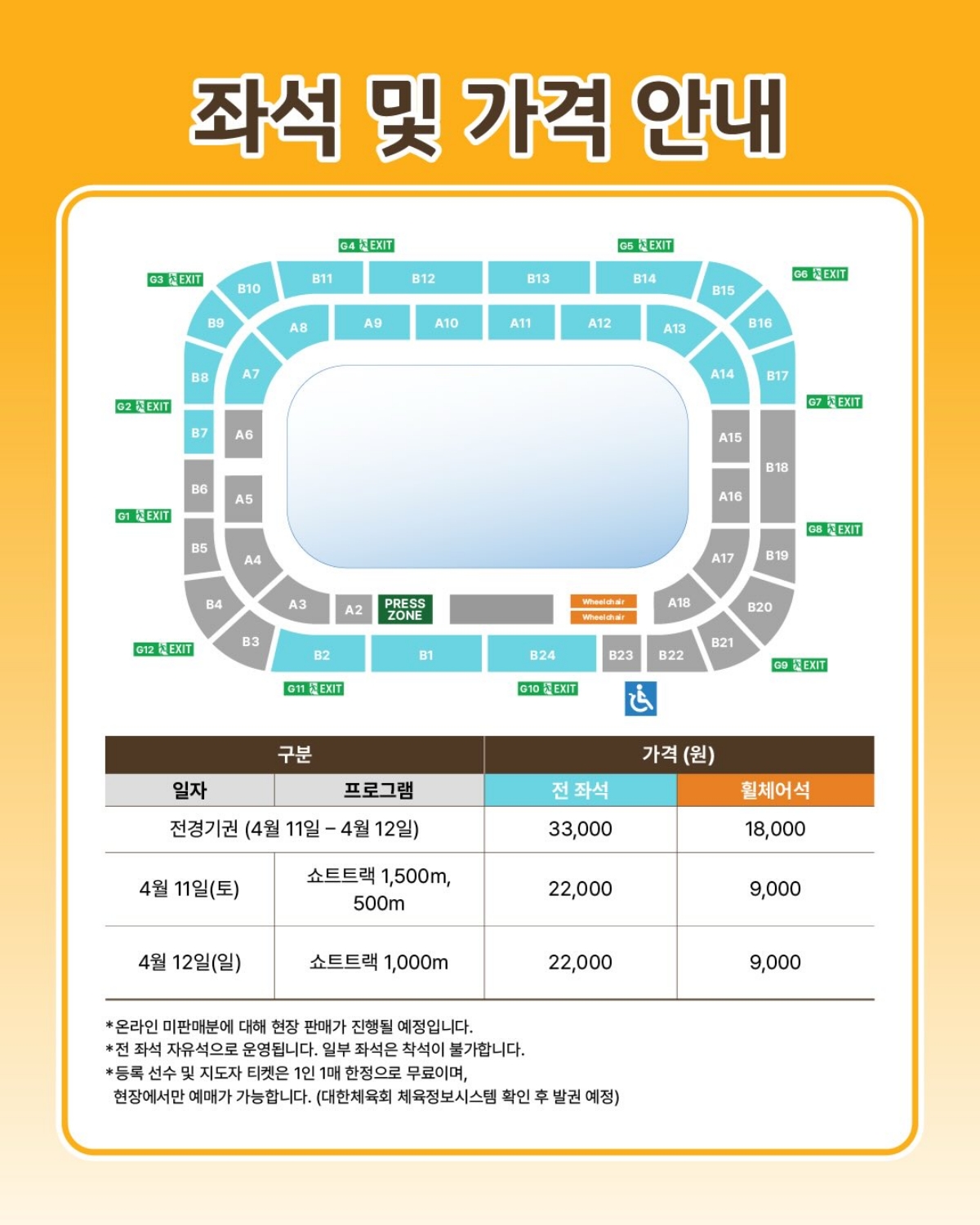 대한빙상경기연맹은 2차 선발전에 유료 티켓 판매를 결정했다. 연맹은 전경기권 3만3000원, 일일권은 2만200원의 티켓 가격을 매겼다.