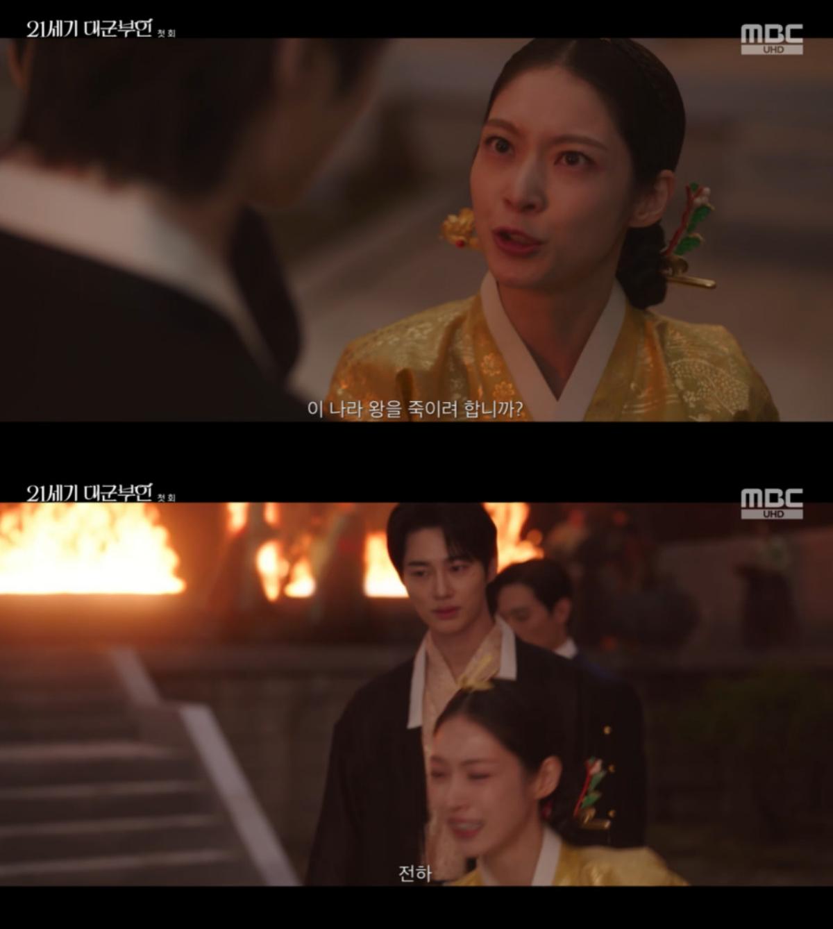 그 순간 대비마마 윤이랑(공승연)이 달려와 이안대군의 뺨을 때리며 "그대가 또 이 나라 왕을 죽이려 합니까?"라며 분노했다.