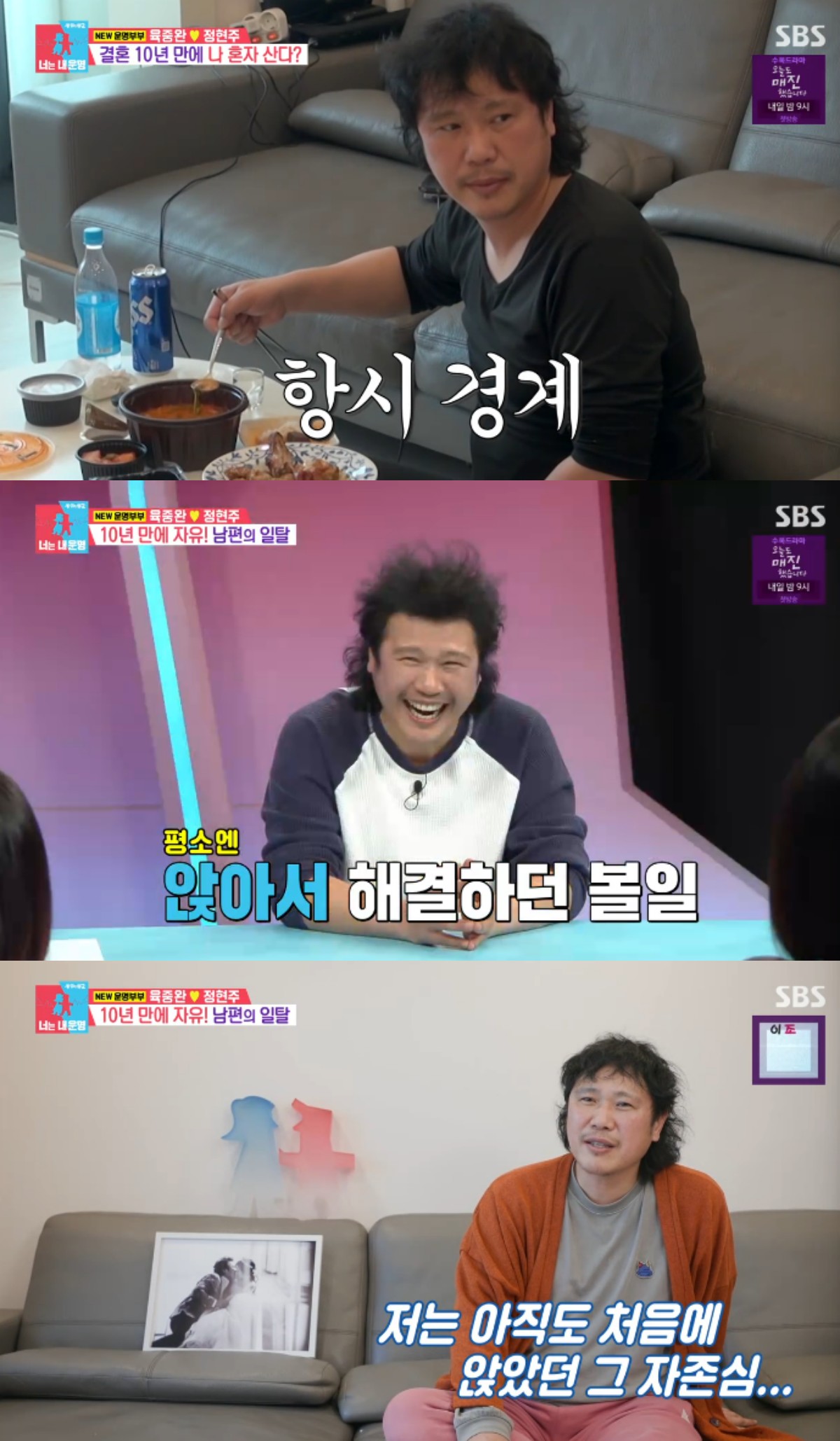 그러면서도 육중완은 혹시라도 아내와 딸이 갑자기 집에 올까봐 작은 소리에도 경계를 하는 모습으로 웃음을 자아냈다.