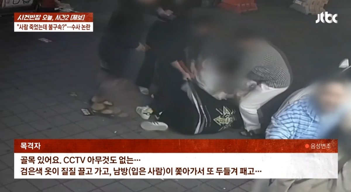 이어 목격자는 김 감독이 '안 하겠다'는 제스처를 취했다며 "남방 입은 사람이 바로 주먹을 꽂으면서 시작됐다. CCTV 없는 골목이 있다. (여러 명이) 질질 끌고가서 때렸다"고 전했다.