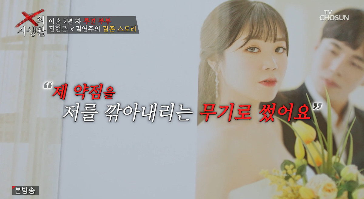 전 아내 길연주와의 결혼 스토리를 풀어낸 진현근은 "제 약점을 저를 깎아내리는 무기로 썼다. 그게 제일 힘들고 가족 같지 않았다"며 "나만 가족에서 떨어져 있는 느낌이었다"고 털어놓았다.