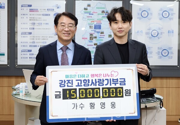 가수 황영웅 "따뜻한 환대 깊이 감사"···고향사랑기부금 강진군 기탁