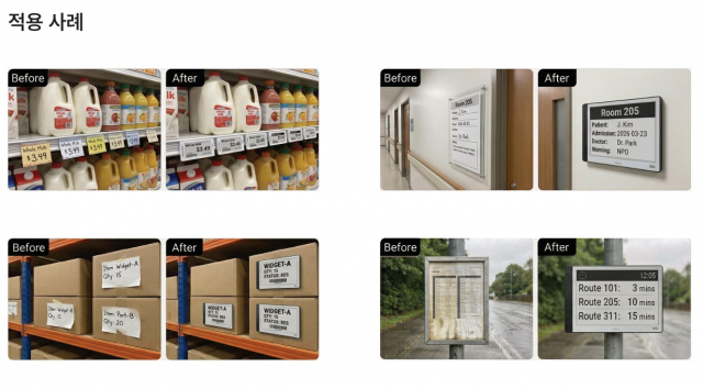 아이에스솔루션은 이러한 흐름에 맞춰 전자잉크(E-Paper) 기반 디스플레이를 활용한 정보 운영 솔루션을 제안하고 있다. 전자잉크 디스플레이는 종이 출력물을 대체할 수 있는 디지털 매체로, 화면 변경 시에만 전력이 소모되는 특성을 갖는다.